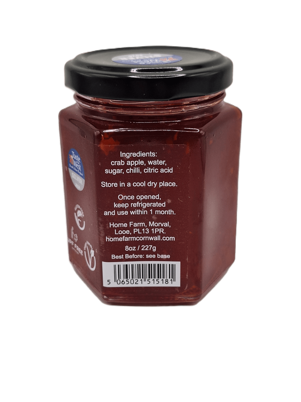 We use fruit from our own orchard and our local community. It is made the good old fashioned way using just the local fruit, Cornish spring water (not mains tap water), our farm grown chilli’s and sugar.