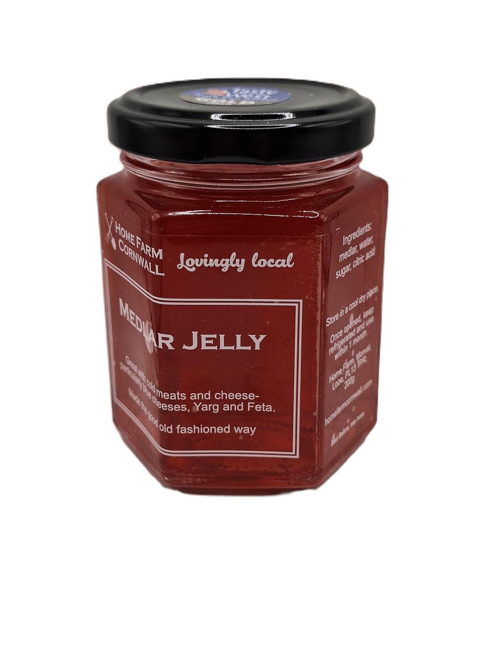 We make our Medlar Jelly on the farm. It is made the good old fashioned way using just the local fruit, Cornish spring water (not mains tap water) and sugar.